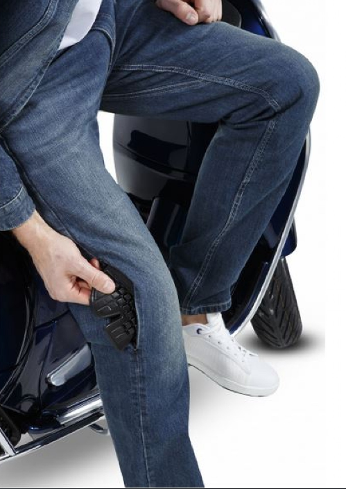 Hergestellt aus abriebfestem Cordura® / Baumwollmischgewebe und Stretcheinsätzen für maximalen Komfort. prEN17092-zertifiziert. Knieschützer zertifiziert nach EN 1621-1: 2012 inkl. (Zugang von der Außenseite der Hose). "Lite Warrior" Hüftprotektoren (liv.1) separat erhältlich. Profilierte Gesäßtaschen mit reflektierendem Druck. Vespa Shape-Nähte auf der Gesäßtasche (Ton-in-Ton) und reflektierender Zierdruck; Passform SLIM.