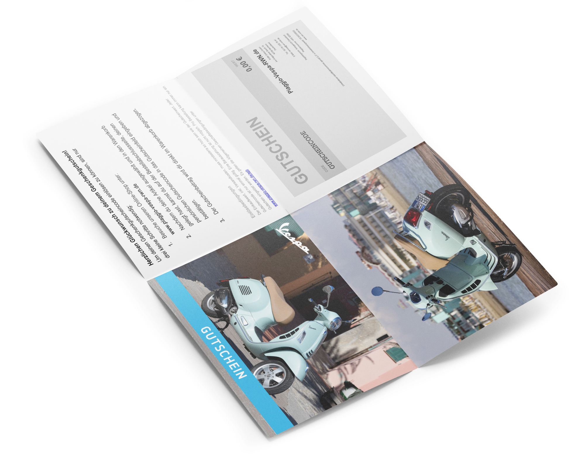 Spare dir den Stress mit einem Vespa Onlineshop Gutschein. Unsere Gutscheine können online eingelöst* werden. Du musst einfach nur den gewünschten Gutschein auswählen und fertig ist das perfekte Geschenk für Freunde oder Familie.