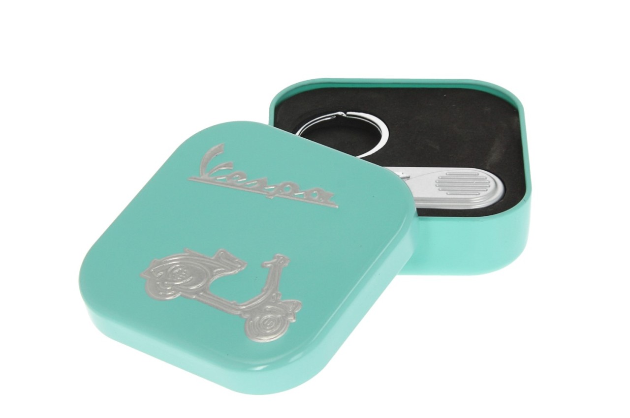 Produktinformationen "Vespa Schlüsselanhänger, klassische Seitenhaube silber"