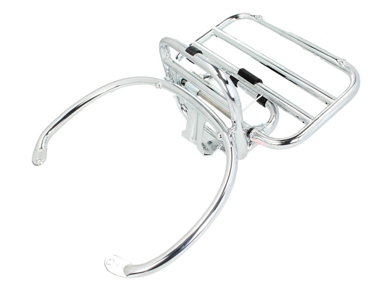 Der Heck-Klapp-Gepäckträger ist aus hochwertigem Material gefertigt und überzeugt durch seine robuste Bauweise. Das Accessoir ist einfach und schnell zu montieren und sorgt dafür, dass dein Topcase sicher an der Vespa befestigt ist.